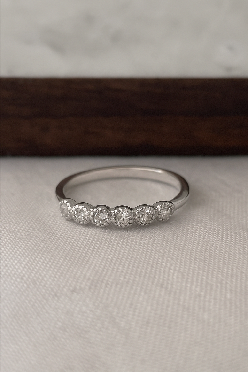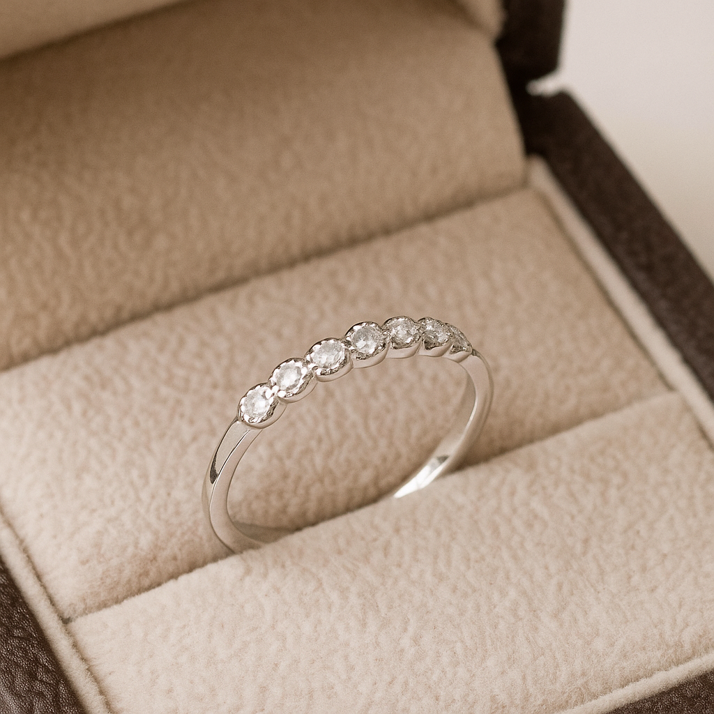 Elevate your jewellery collection with this classic stone band ring, designed in 925 pure silver and finished with premium Rhodium-Plating for a radiant shine. The elegant row of finely set sparkling stones adds just the right amount of brilliance, making it perfect for both daily wear and special occasions. Its sleek and versatile design pairs effortlessly with other rings or shines beautifully on its own. Durable, elegant, and sophisticated—this ring is the ideal blend of modern minimalism and timeless charm.
